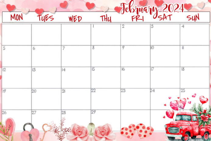 EDITABLE February 2025 Calendar, Valentines Day, Printable